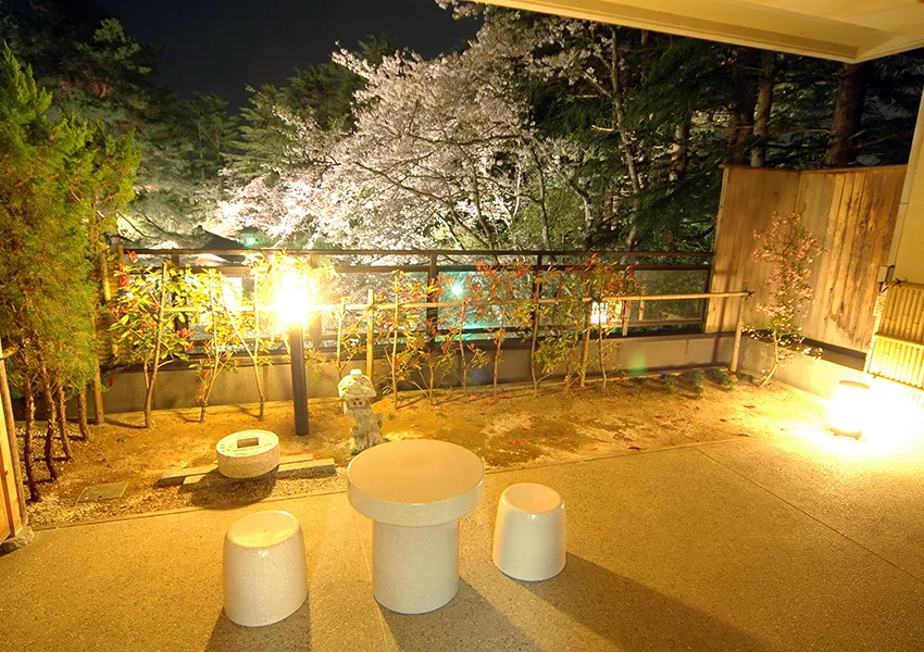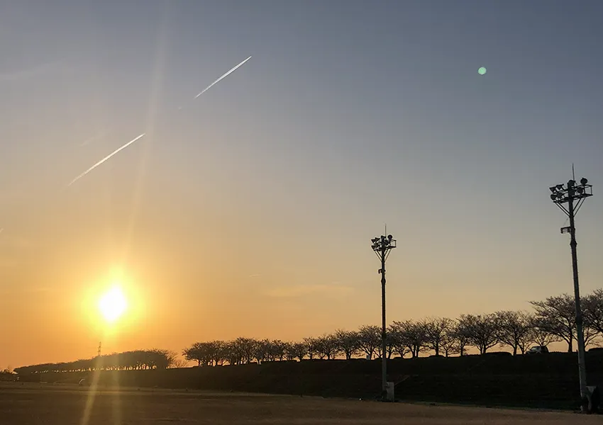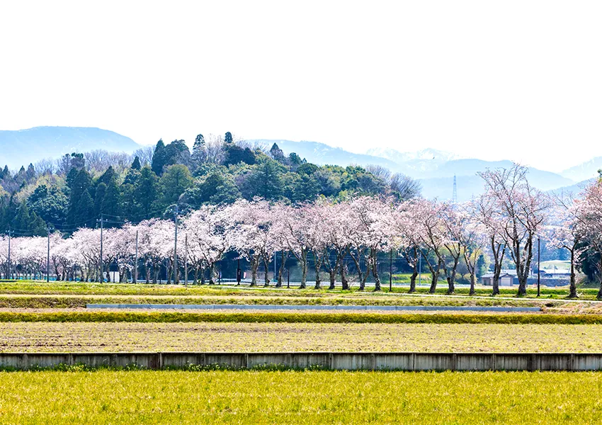 主要地方道金沢・小松線の辰口橋そば、手取川簡易グラウンドの堤防上には約950メートルの桜並木が続きます。4月上旬には、周囲より少し遅れて咲くソメイヨシノ206本と枝垂れ桜3本が春空に映え、開花期にはライトアップも行われます。春の季節には多くの人が訪れる、地域を代表する桜の名所です。
