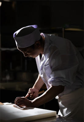宿泊棟ごとに厨房を設けており、つくりたてをお部屋へお届けしております。熟練の料理人が一品一品丁寧に仕上げた、五感で楽しむお料理を、ぜひご堪能ください。